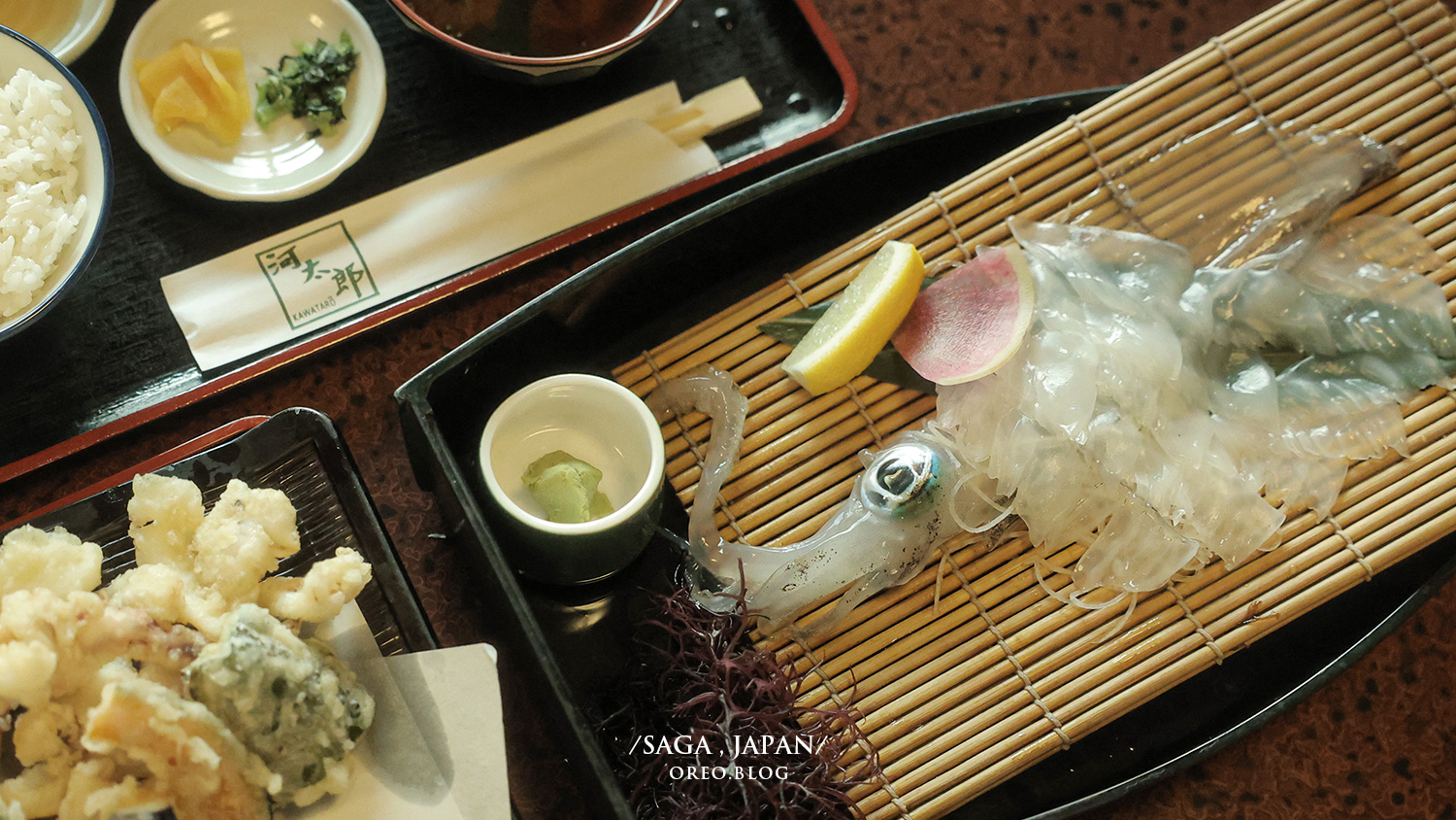 因為店家都是新鮮活烏賊現場料理的,所以端上來的時候會看到烏賊本身還是很透明的狀態,然後會慢慢變半透明、乳白色這樣,絕對要非常新鮮才能夠端上桌是很透明的樣子~炸烏賊天婦羅也很好吃!是那種一咬就斷的,不會像外面鹹酥雞的炸魷魚一樣咬到下巴很痠~很脆真的超好吃!!
