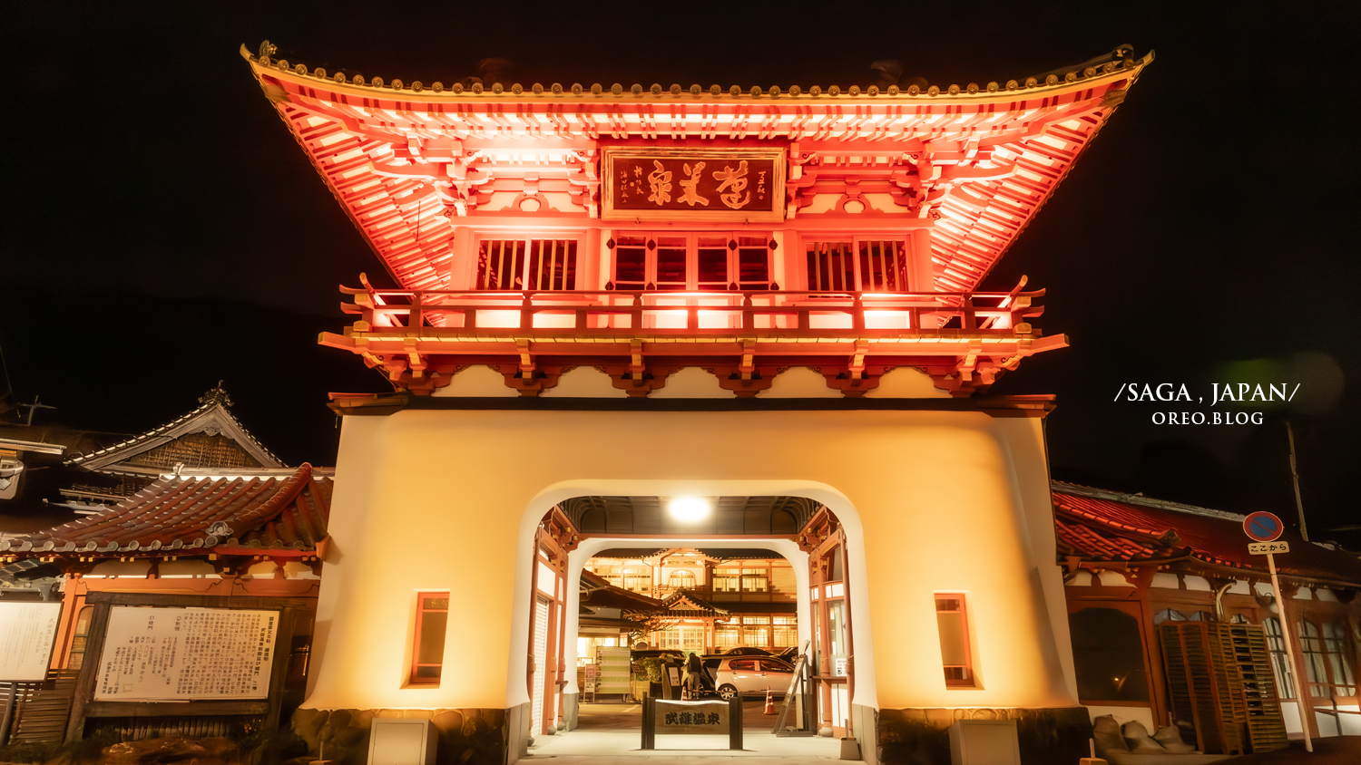 ▲夜晚的武雄溫泉入口處的樓門,晚上也很有氣氛!是由知名建築師 辰野金吾(東京車站設計者之一)設計的,晚上都會點燈很漂亮!這裡跟我們住的地方很近走路就到了,裡面是泡溫泉的地方,武雄溫泉的元湯也在裡面,也有個人湯屋!不想要泡大眾溫泉的話可以來這裡泡湯!裡面的「楼門亭」也有提供住宿。