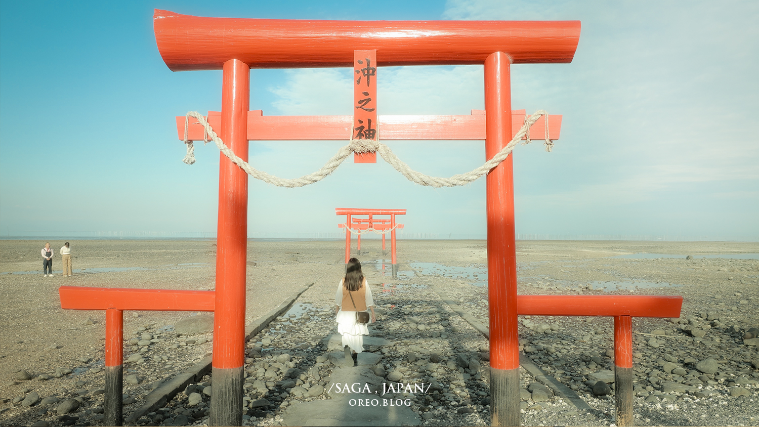 這次最期待的景點也包含了「大魚神社 海中鳥居」!連續三座鳥居矗立在有明海的海面上,被當地人稱為 「海上的參道」。而且會隨著不同的潮汐變化而有不同的景色,但可惜我們去的時候潮汐已經退到底了,一點點海水都不留給我啊~這點也是我失算了,沒有想到潮差會這麼大,大魚神社的主祭神為「 海上守護神(海の神様)」,是祈求漁民的安全與豐收。