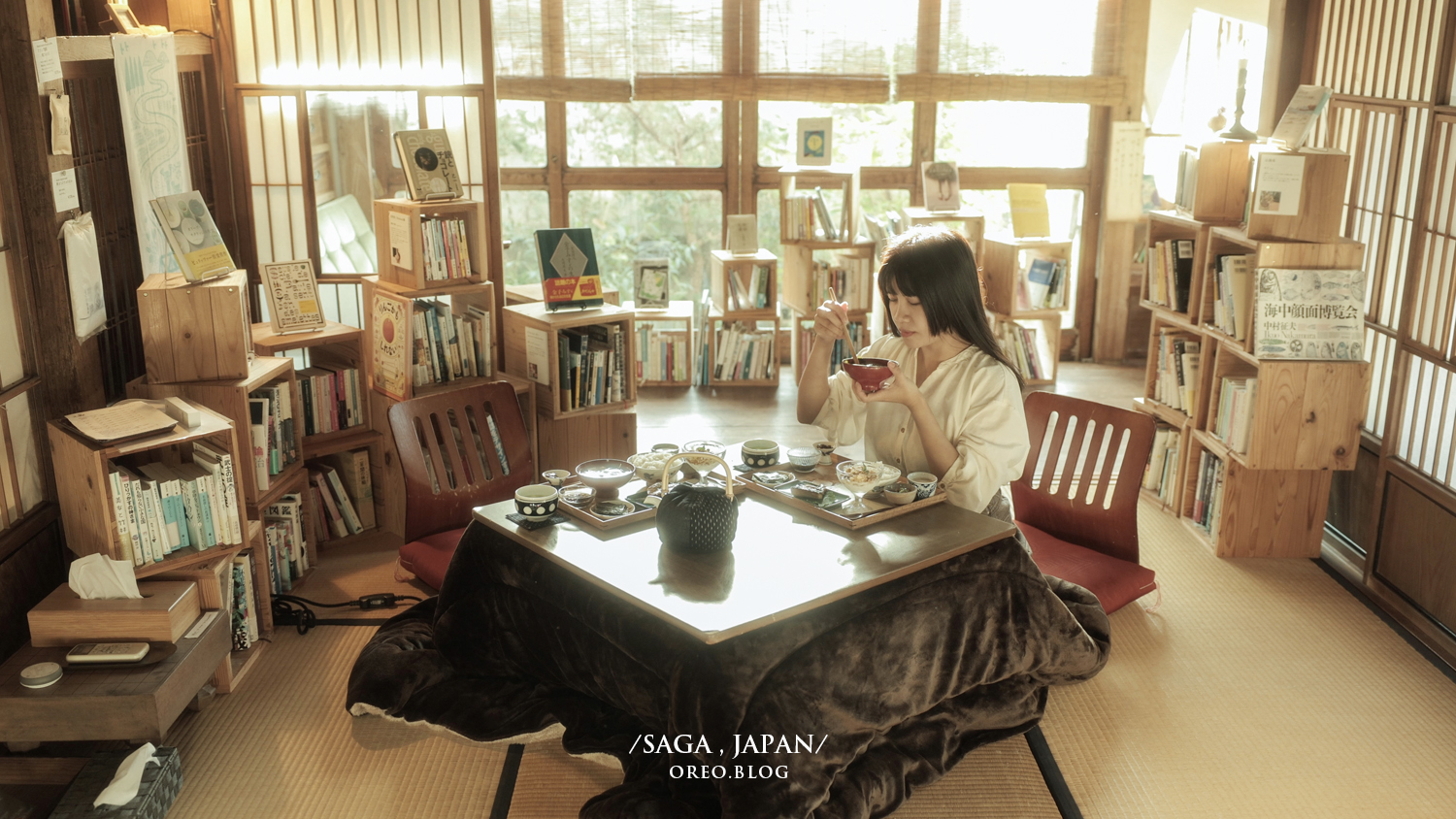 這次最期待住的地方就是這裡了!!這裡是古湯溫泉的一間獨棟民宿,民宿主人邀請了70位九州的愛書人,各自推薦他們覺得最想永遠擺在家裡的20本書籍,因此就有了收藏在這裡的1400本書!隨處都能看到很多特色書籍,雖然都是全日文,但是也有一些是攝影書或者是童書,整個擺設都非常的有書香味!白天這裡是作為咖啡廳,晚上則作為住宿,如果沒辦法住在這裡一晚,也可以選擇下午來,但也要事先預約喔!