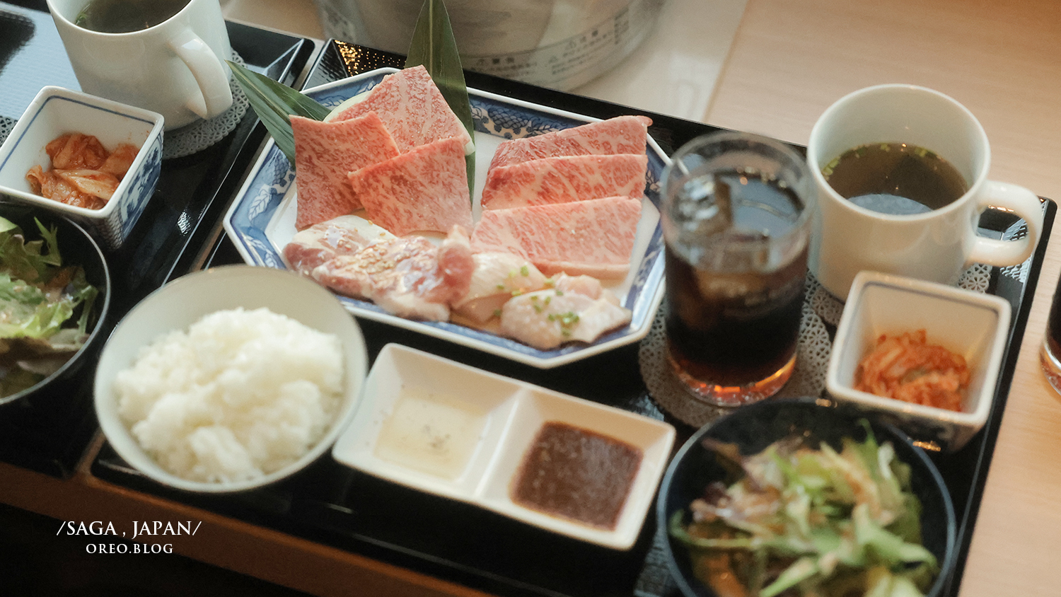 來到佐賀,怎麼可能不吃一下佐賀牛!不過因為前面幾天我們都在別的區域,佐賀牛在佐賀車站附近店家比較多,偏偏我們要離開佐賀時是中午,佐賀車站周圍的燒肉店都是開晚上的!本來在想著吃不到佐賀牛怎麼辦時,在地圖上搜尋到這家中午有開,評價也很好重點是午餐定食超便宜的!!馬上衝過去吃!雖然離車站走路要十分鐘哈哈~